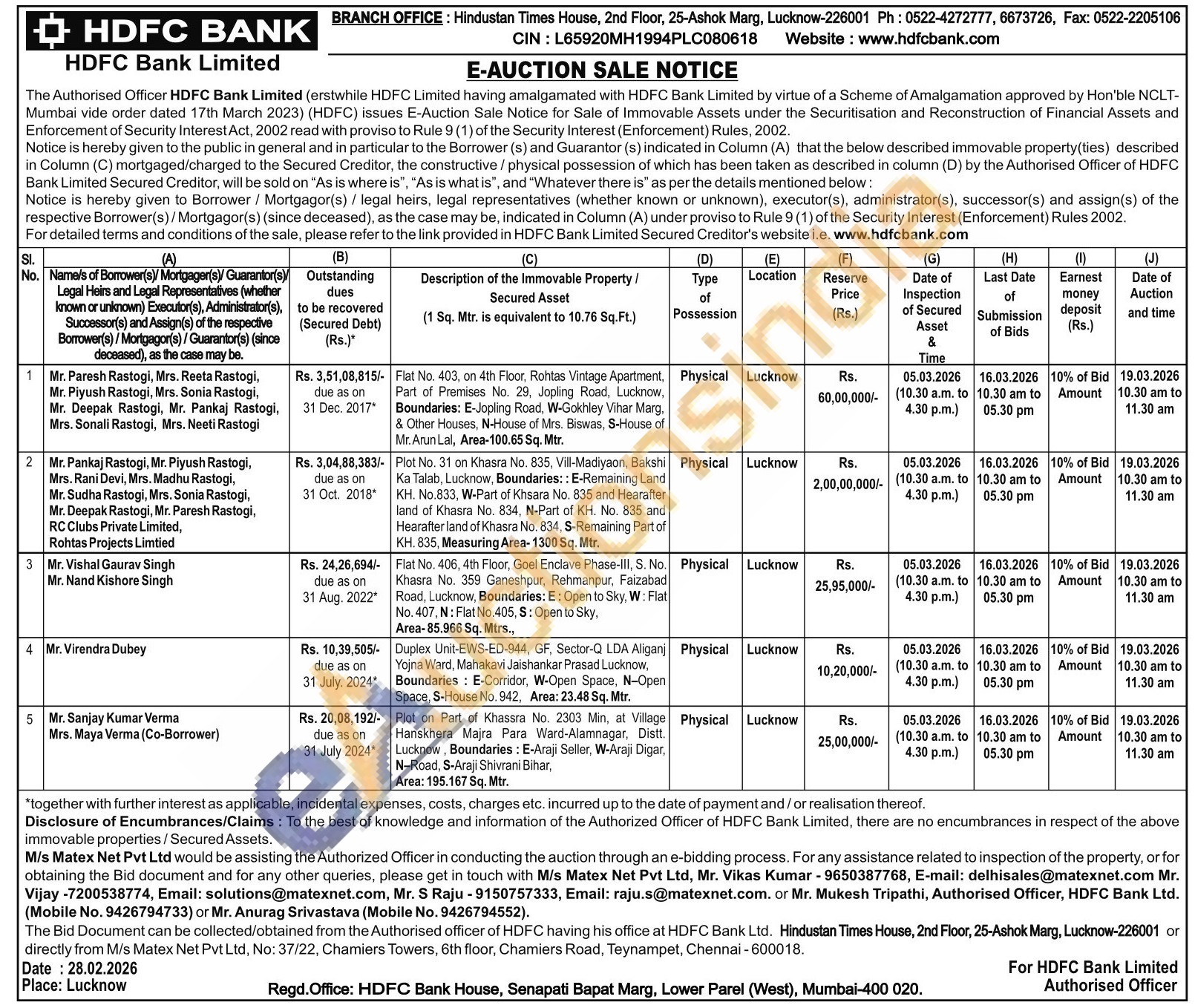 Plot on Part of Khassra No. 2303 Min, at Village Hanskhera Majra Para Ward-Alamnagar, Distt. Lucknow, Boundaries: E-Araji Seller, W-Araji Digar, N-Road, S-Araji Shivrani Bihar, Area: 195.167 Sq. Mtr.
