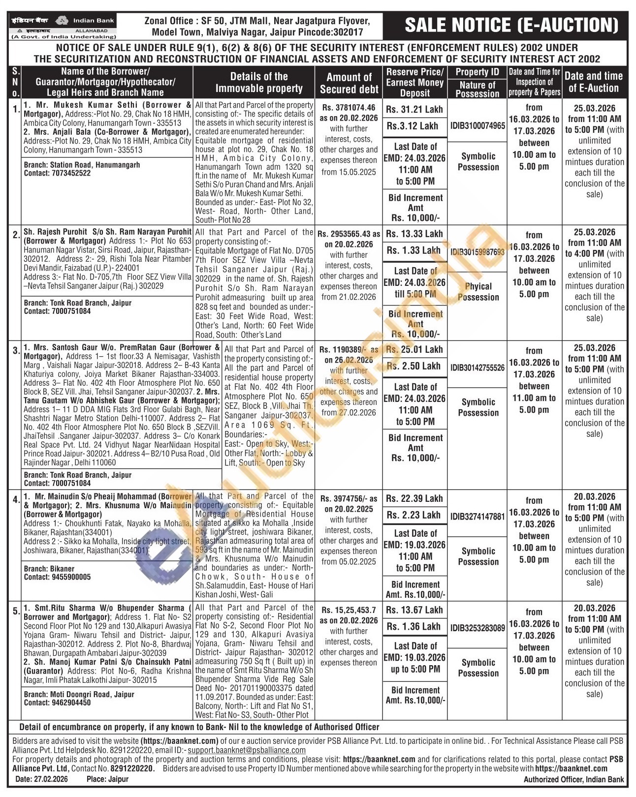 All that Part and Parcel of the property consisting of: Residential Flat No S-2, Second Floor Plot No 129 and 130, Alkapuri Avasiya Yojana, Gram- Niwaru Tehsil and District- Jaipur Rajasthan- 302012 admeasuring 750 Sq ft (Built up) in the name of Smt Ritu Sharma W/o Sh Bhupender Sharma Vide Reg Sale Deed No-201701190003375 dated 11.09.2017. Bounded as under: East: Balcony, North-: Lift and Flat No S1. West: Flat No-S3, South-Other Plot
