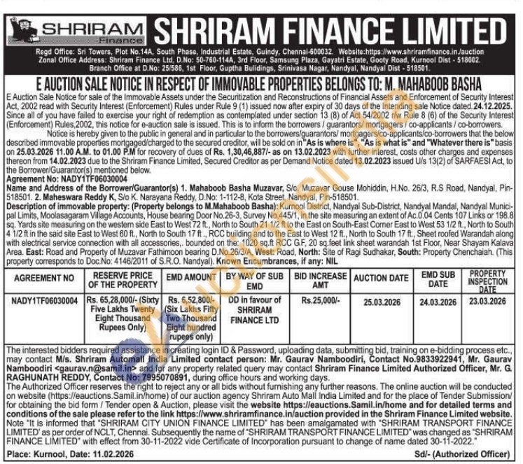contact Authorized Officer, Mr. G. RAGHUNATH REDDY, Contact No: 7995070891