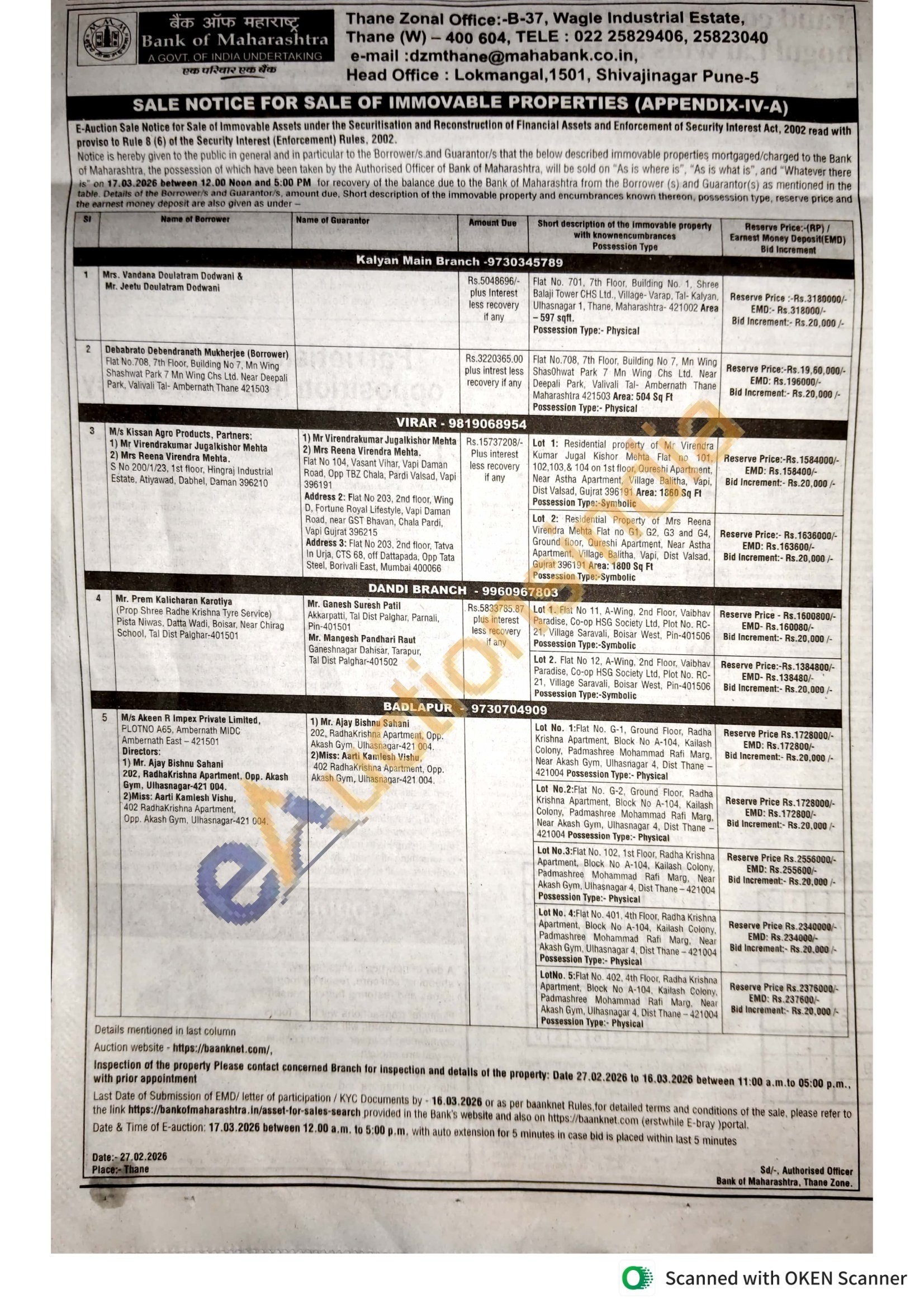 Lot 1. Flat No 11, A-Wing, 2nd Floor, Vaibhav Paradise, Co-op HSG Society Ltd, Plot No. RC-21. Village Saravali, Boisar West, Pin-401506 Possession Type:-Symbolic