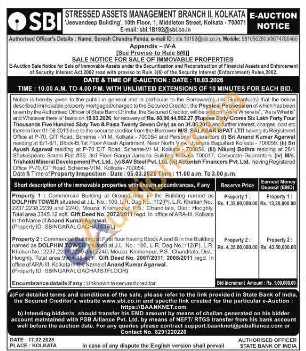 Property 2: Commercial Building at First floor having Block A and B in the Building named as DOLPHIN TOWER situated at J.L. No.: 100, LR. Dag No.: 112(P), LR. Khatian No.: 2237,2238,2239 and 2240, Mouza: Krishanpur, PS: Chanditala, Dist.: Hooghly. Total area 9964.18 sqft. Gift Deed No. 2067/2011, 2068/2011 regd. In office of ARA-III, Kolkata in the Name of Anand Kumar Agarwal.