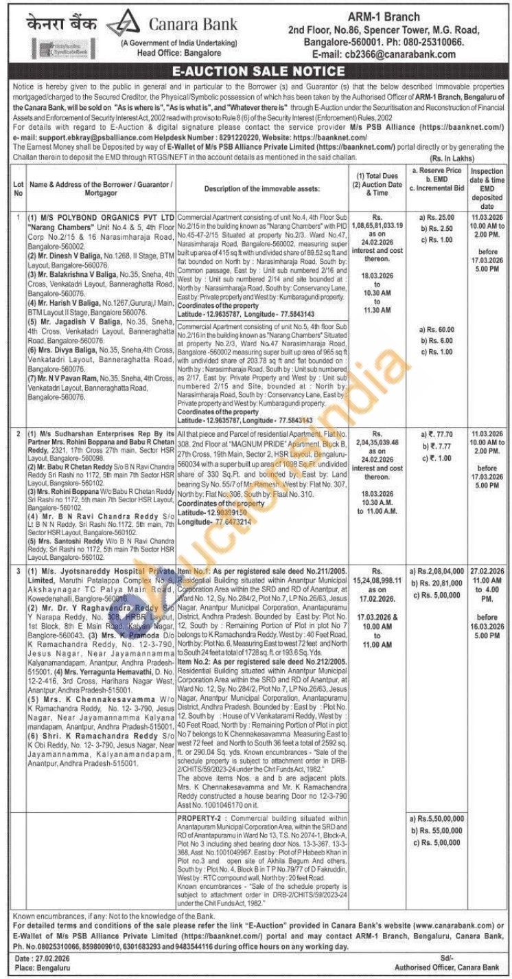 Commercial Apartment consisting of unt No.4, 4th Floor Sub No 2/15 in the building known as "Narang Chambers with PIO No 45-47-2/15 Situated at property No.213. Ward No.47. Narasimharaja Roext, Bangalore-560002 measuning super bult up area of 415 sqft with undivided share of 86.52 sq tand Bat bounded on North by Narasimharaja Road, South by Common passage. East by Usit sub numbered 2116 and West by Unit sub numbered 2/14 and site trounded at Norhay Narasharaja Roat South by: Comservancy Lane East by Private properly and Westby: Kumbaragund property
