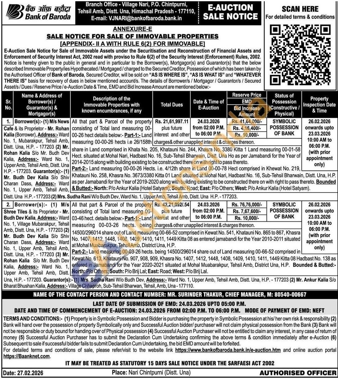All that part & Parcel of the property consisting of Total land measuring 00-03-46 hect. details below:-Part-1:-Land measuring 00-03-26 hects. being 14500/296014 share out of Land measuring 00-66-52 comprised in Kewat No. 541, Khatauni No. 865 to 867, Khasra No. 1407, 1412, 1448, 1408, 1409, 1410, 1411, 1449 Kitta 08 as entered jamabandi for the Year 2010-2011 situated at Mohal Muabarakpur, Tehsil Amb, District Una, H.P.