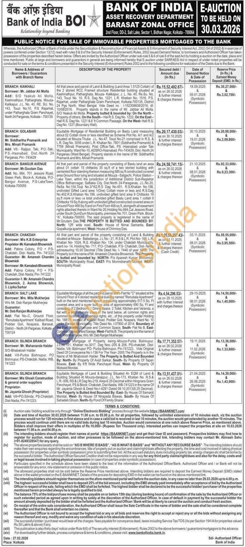 Equitable Mortgage of Land & Building Situated At- EQM of Land & Building Situated At Mouza-darappur, J.L. No-173, Khatian No. R.S.& L.R.-506, RS & LR Dag No-219, Area-6.25 Decimal within Hingnara Gram Panchayet, PS & Block-Chakdah, Dist-Nadia, WB-741223 in the name Of Mr. Jayanta Ghosh & Deed No-1-4281 Dated 09.10.2013(6.25 Decimal). The Property is Butted And Bounded By: East- By House Of Samarjit Mondal, West- By House Of Nirapada Biswas, South- By House Of Sahadeb Ghosh, North-By Pond Of Family Sharer