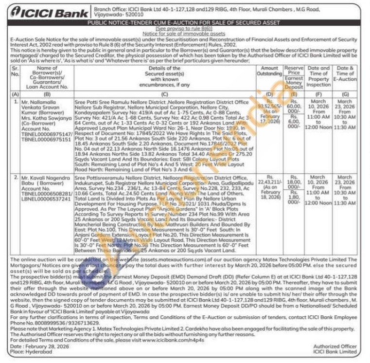 Sree Potti Sree Ramulu Nellore District, Nellore Registration District Office Nellore Sub Registrar, Nellore Municipal Corporation, Nellore City. Kandayapalem Survey No: 419/A out of Ac 1-75 Cents, Ac 0-88 Cents, Survey No: 421/A Ac 1-68 Cents, Survey No: 422 Ac 0.98 Cents Total Ac 3-64 Cents, out of Ac 1-33 Cents Ac 0-32 Cents or 192 Ankonas Land With Approved Layout Plan Municipal Ward No: 26-1, Near Door No: 1990, In / Respect of Document No: 17845/2022 We Have Rights in The Said Plots, Plot No: 3 out of 21.56 Ankanas South Side 220 Ankanas, Plot No: 6 out of 18.45 Ankanas South Side 2.20 Ankanas, Document No. 17846/2022 Plot No. 04 out of 22.13 Ankanas North Side 16.1476 Ankanas Plot No:05 out of 18.94 Ankonas Norths Side 13.82 Ankanos Total 34.40 Ankanas Or 275.20 Sqyds Vacant Land And Its Boundaries: East: SBI Colony Layout Plots South: Remaining Land of Plot No's 4 And 5 West: 20 Feet Wide Layout Road North Remaining Land of Plot No's 3 And 6.