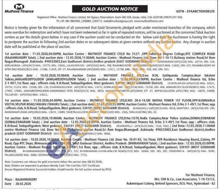 Muthoot Finance Ltd Gold Auctions Auction in Rajahmundry