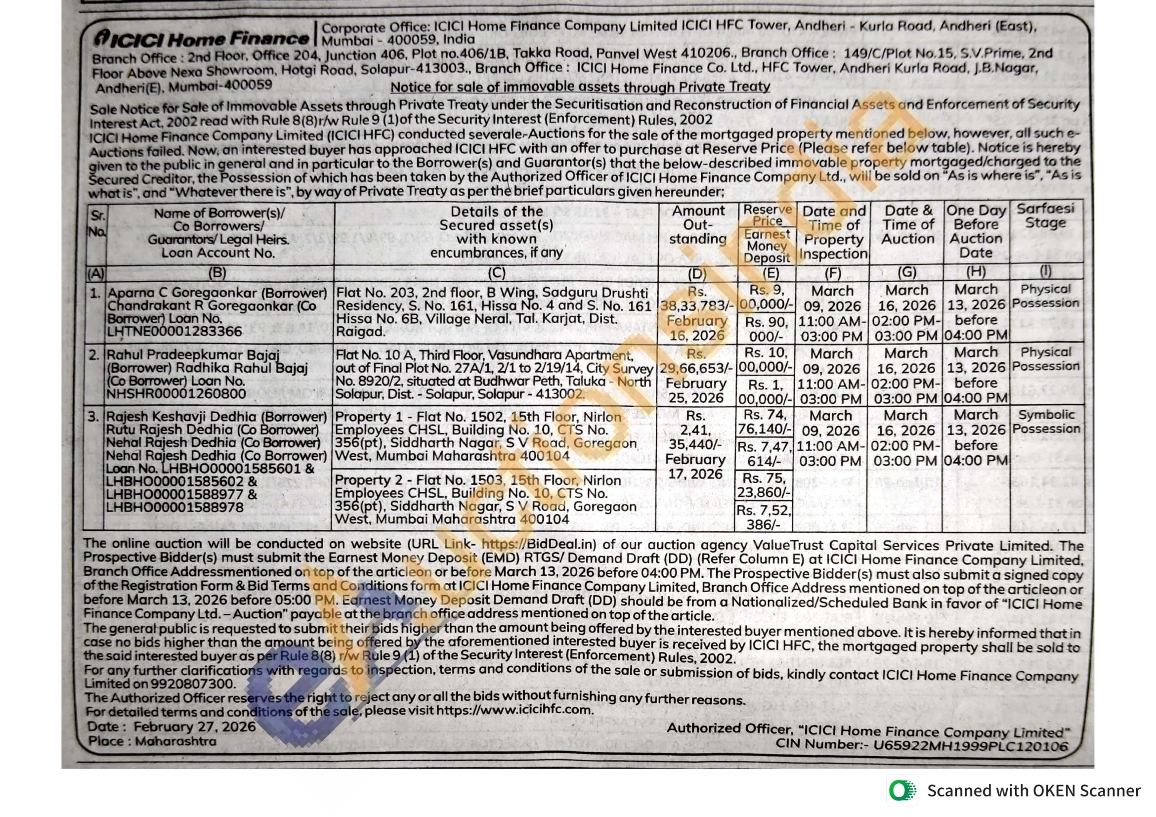 Property 1-Flat No. 1502, 15th Floor, Nirlon Employees CHSL, Building No. 10, CTS No. 356(pt), Siddharth Nagar, SV Road, Goregaon West, Mumbai Maharashtra 400104