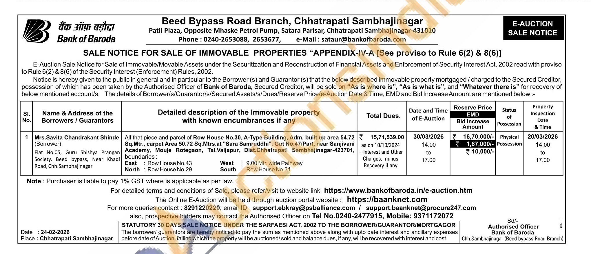 Authorised Officer on Tel No.0240-2477915, Mobile: 9371172072