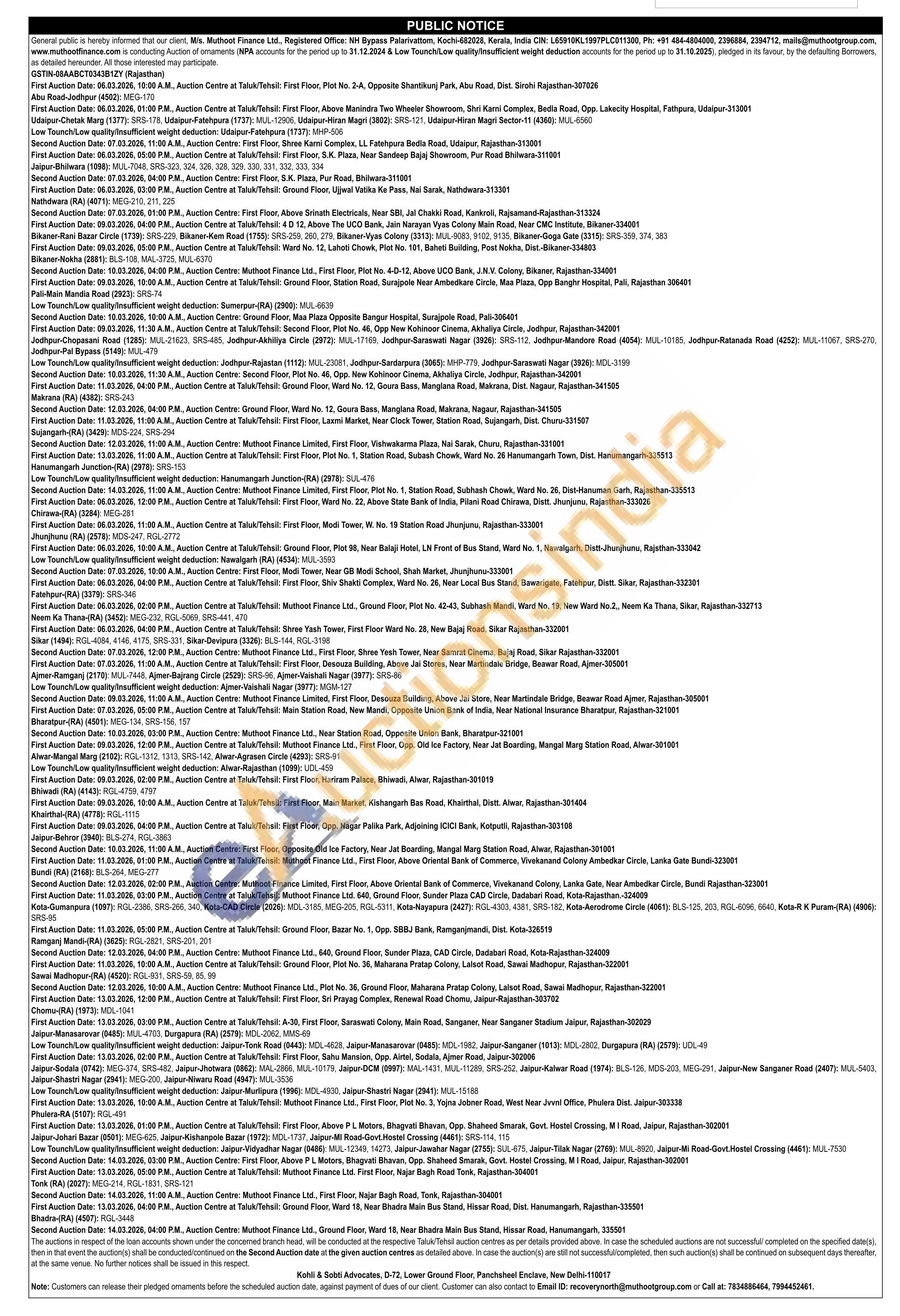 Muthoot Finance Ltd Gold Auctions Auction in Sirohi
