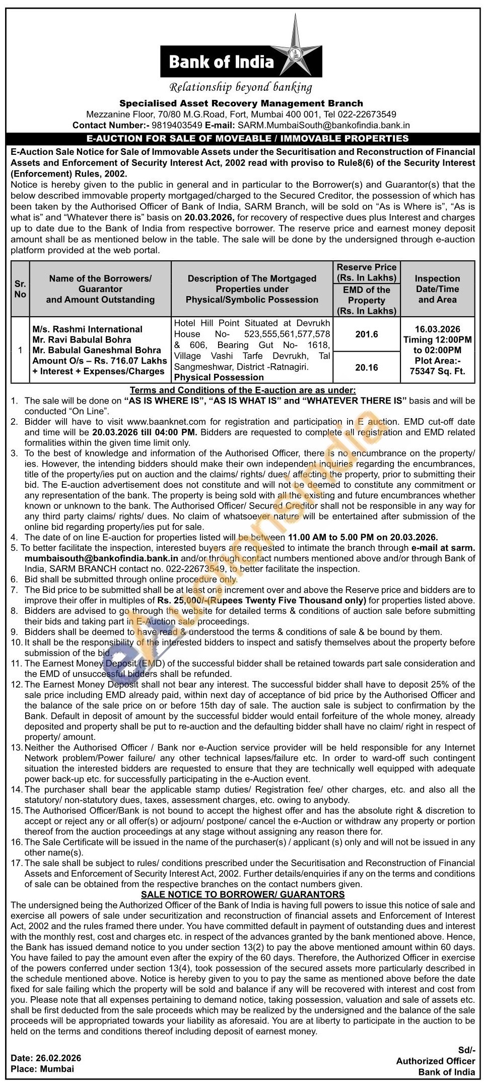 Hotel Hill Point Situated at Devrukh House No- 523,555,561,577,578 & 606, Bearing Gut No- 1618, Village Vashi Tarfe Devrukh, Tal Sangmeshwar, District -Ratnagiri