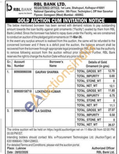 RBL Bank Gold Auctions Auction in Kolhapur