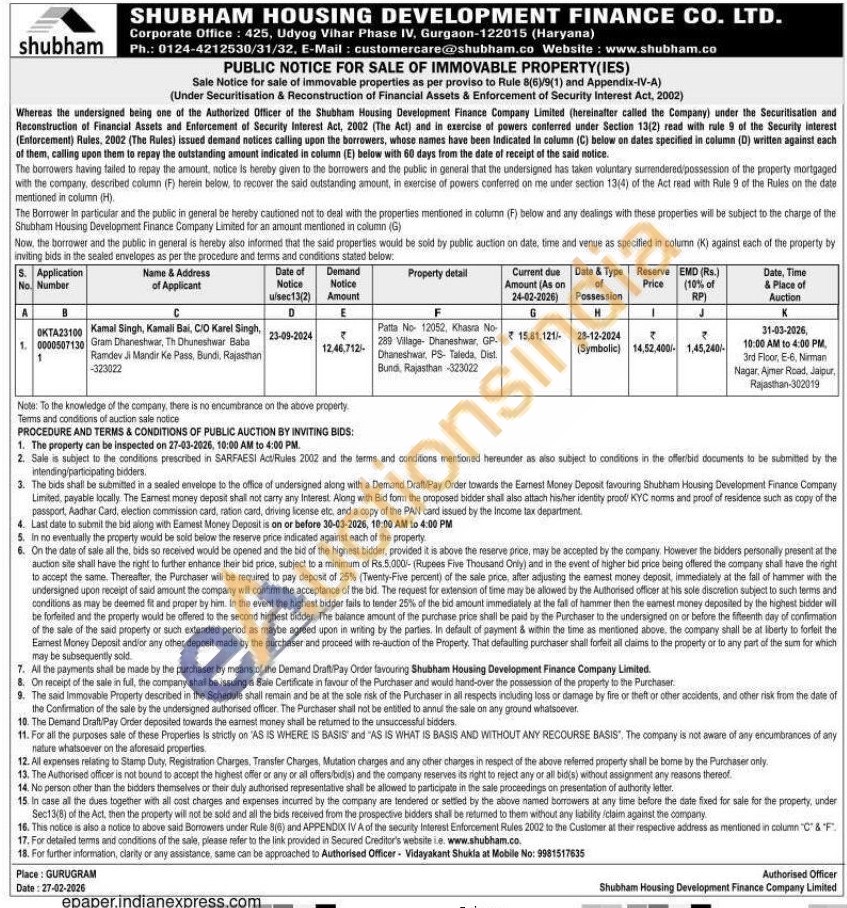 Authorised Officer- Vidayakant Shukla at Mobile No: 9981517635