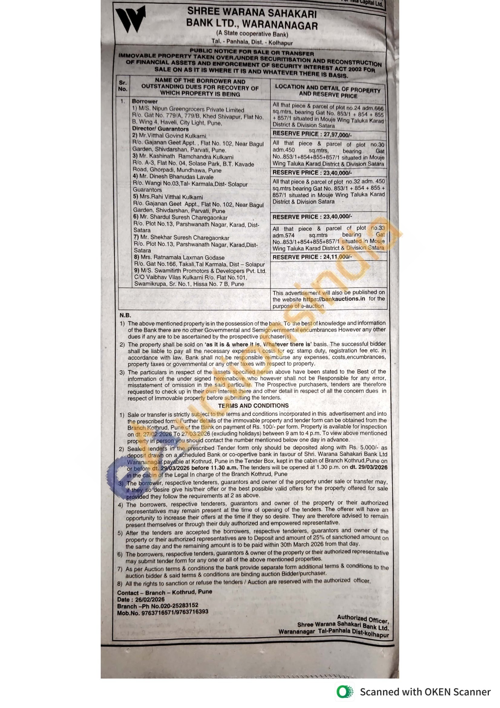 Contact Branch -Ph No.020-25283152 Mob.No. 9763716571/9763716393