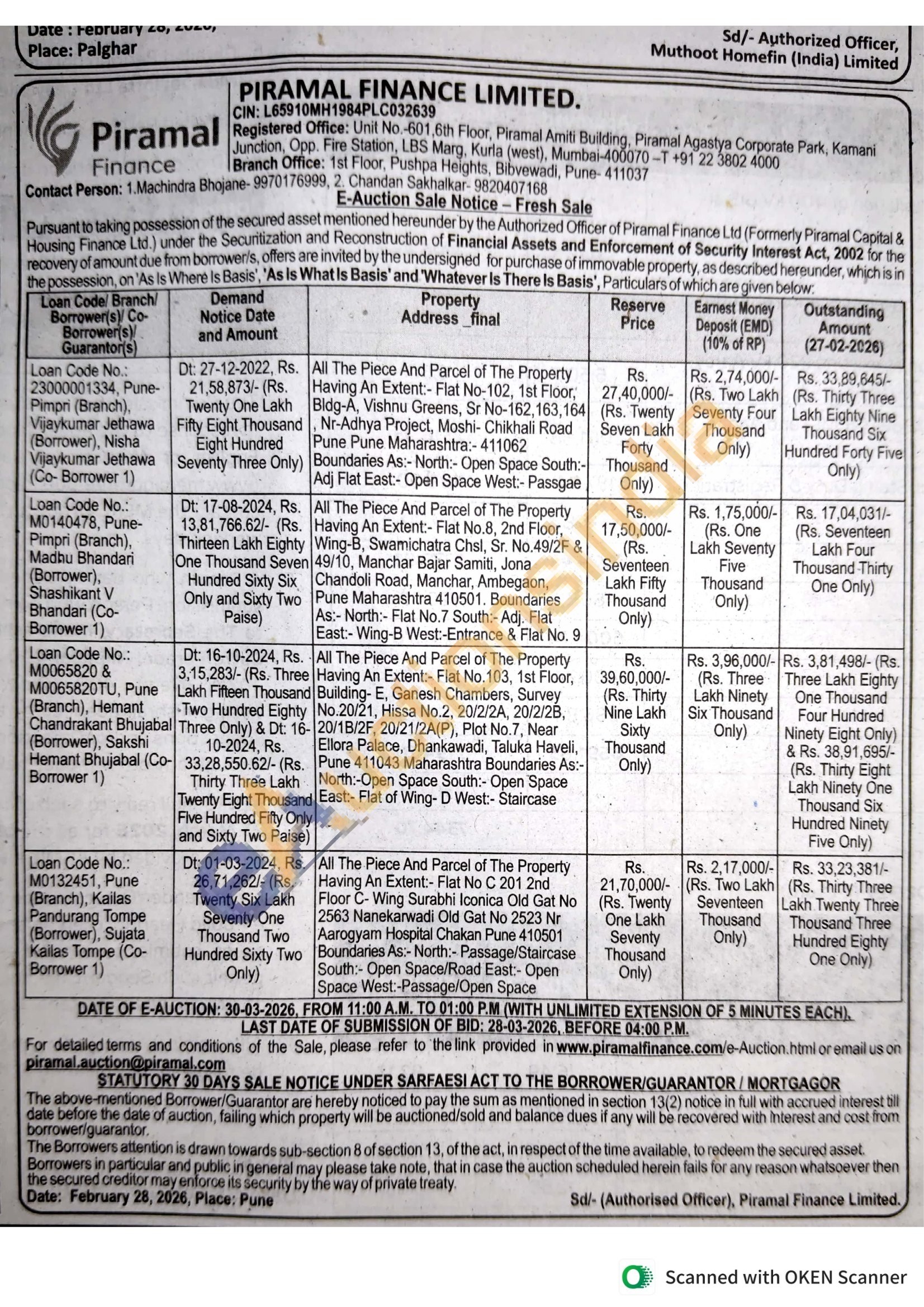 Contact Person: 1. Machindra Bhojane-9970176999, 2. Chandan Sakhalkar- 9820407168