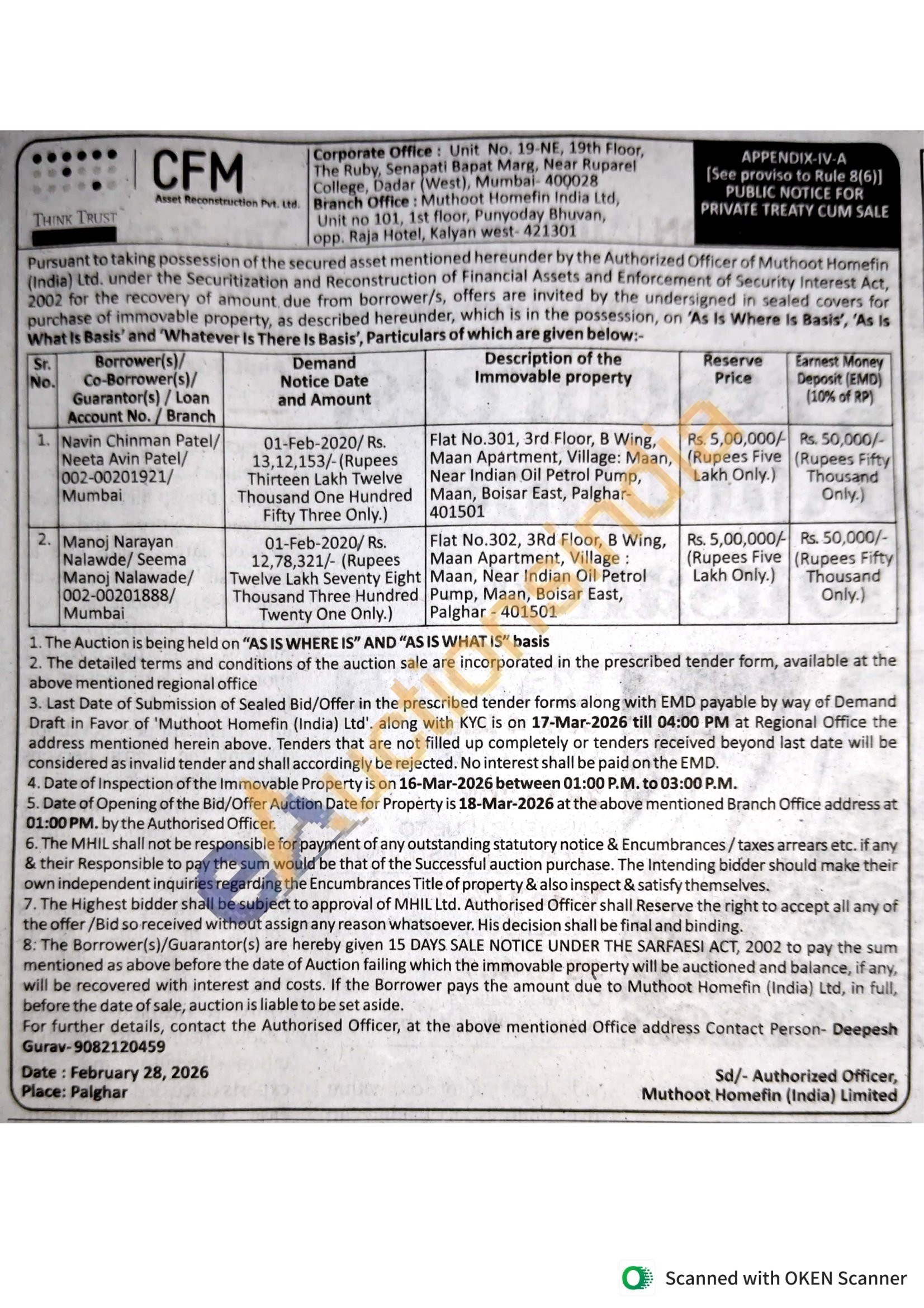 Flat No.302, 3Rd Floor, B Wing, Maan Apartment, Village: Maan, Near Indian Oil Petrol Pump, Maan, Boisar East, Palghar-401501