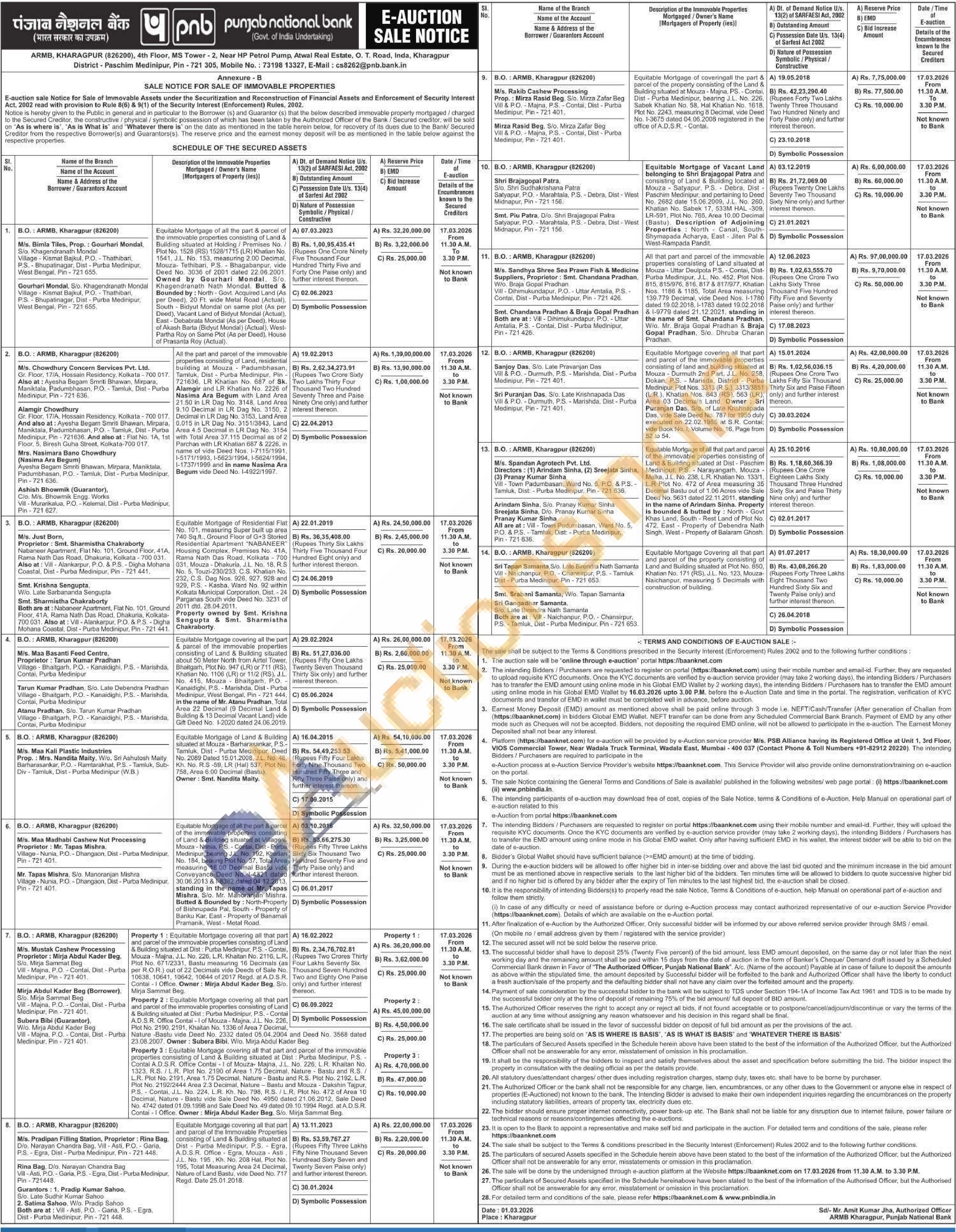 Equitable Mortgage of all the part & parcel of the immovable properties consisting of Land & Building situated at Holding/Premises No. Plot No. 1528 (RS) 1528/1715 (LR) Khan No 1541, J.L. No. 153, measuring 2.00 Decimal Moura Tuthibari, PSBhagabanpur, vide Deed No. 3036 of 2001 dated 22.06.2001 Owned by Gourhari Mondal, So Khagendranath Nath Mondal Butted & Bounded by: North Govt. Acquired Land (As per Deed), 20 Ft. wide Metal Road (Actual), South-Bidyut Mondal on same plot (As per Deed), Vacant Land of Bidyut Mondial (Actual) East-Debabrata Mondal (As per Deedi. House of Akash Barta (Bidyut Mondal) (Actual) West Partha Roy on Same Plot (As per Deed), House of Prasanta Roy (Actual