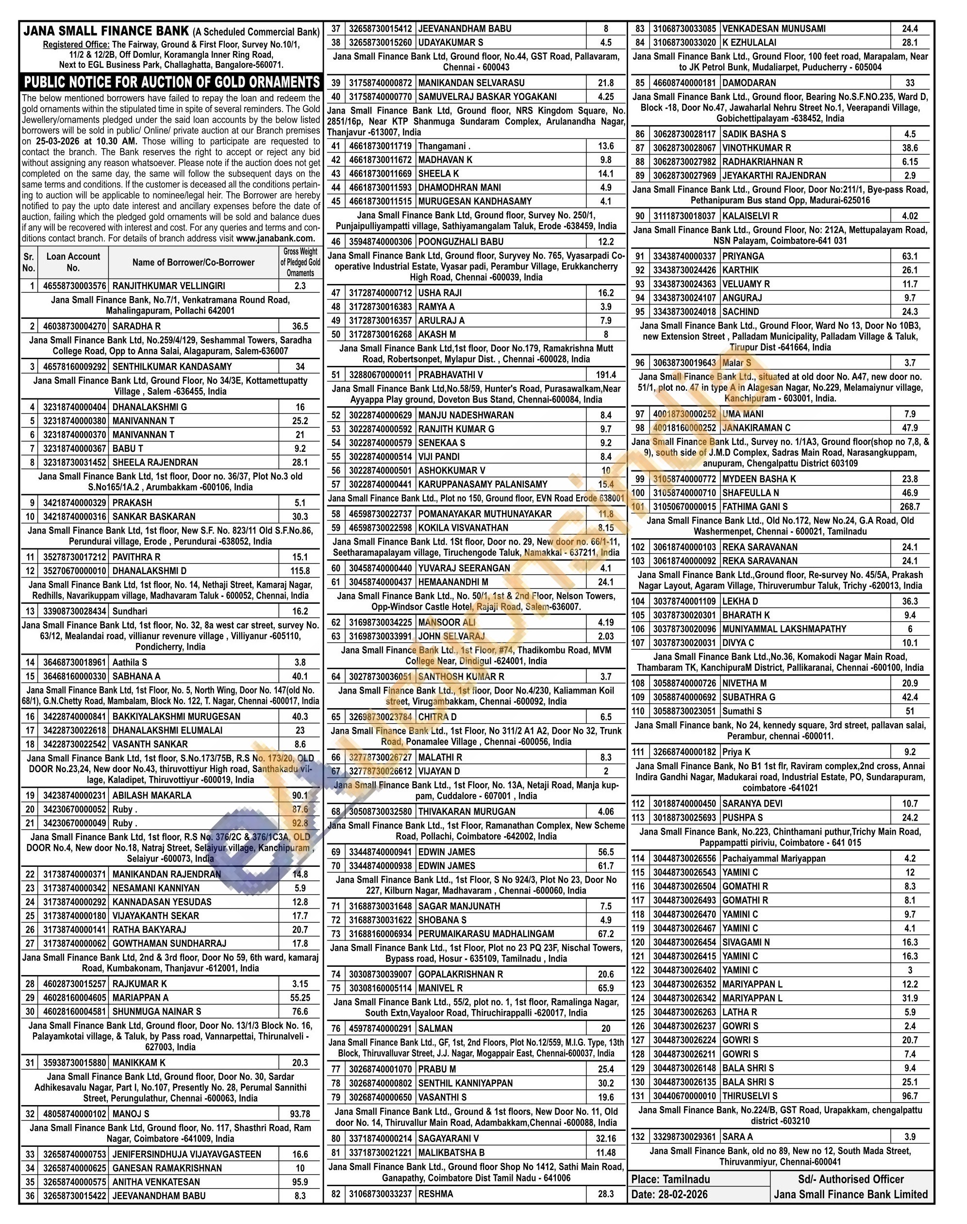 Jana Small Finance Bank Gold Auctions Auction in Salem