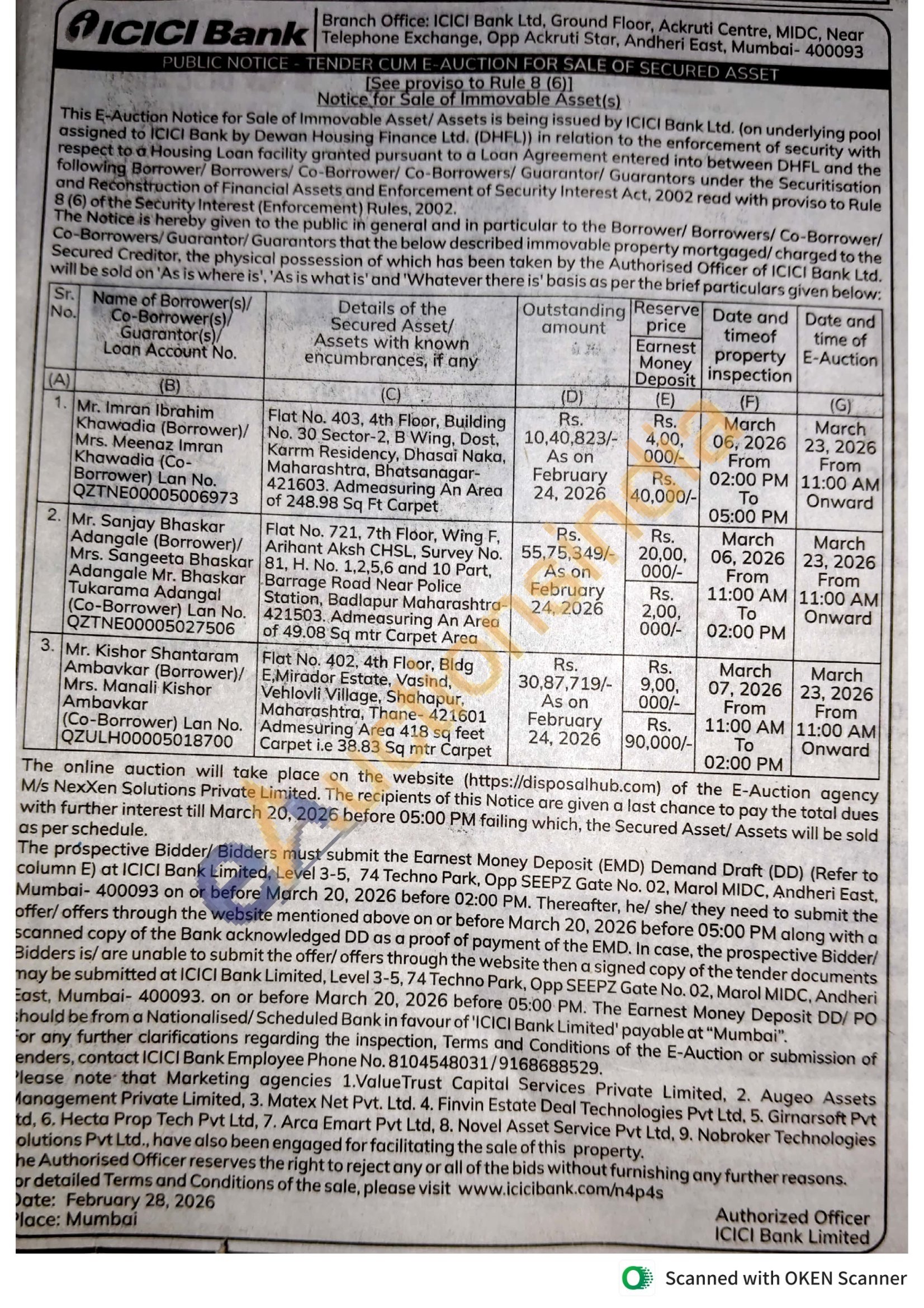 Flat No. 721, 7th Floor, Wing F. Arihant Aksh CHSL, Survey No. 81, H. No. 1,2,5,6 and 10 Part, Barrage Road Near Police Station, Badlapur Maharashtra-421503. Admeasuring An Area of 49.08 Sq mtr Carpet Area