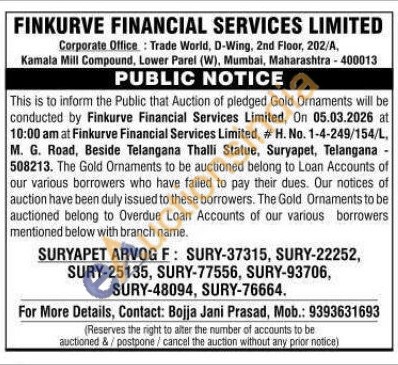 FINKURVE FINANCIAL SERVICES LIMITED Gold Auctions Auction in Suryapet