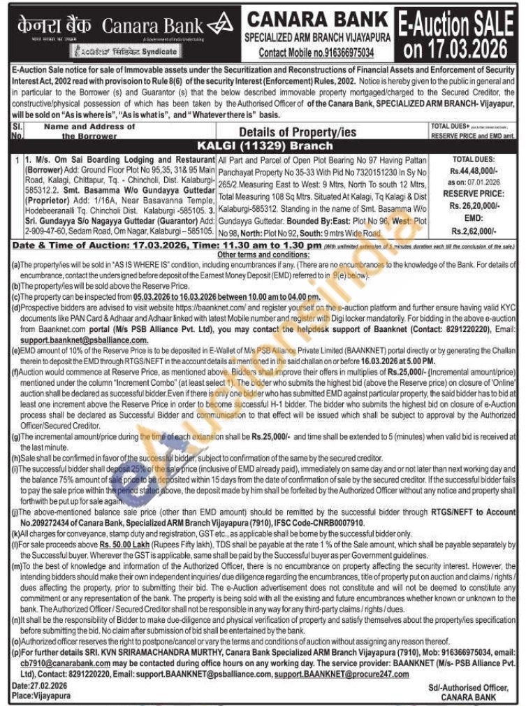 All Part and Parcel of Open Plot Bearing No 97 Having Pattan Panchayat Property No 35-33 With Pid No 7320151230 In Sy No 265/2.Measuring East to West: 9 Mtrs, North To south 12 Mtrs, Total Measuring 108 Sq Mtrs. Situated At Kalagi, Tq Kalagi & Dist Kalaburgi-585312. Standing in the name of Smt. Basamma W/o Gundayya Guttedar. Bounded By:East: Plot No 96, West: Plot No 98, North: Plot No 92, South: 9 mtrs Wide Road
