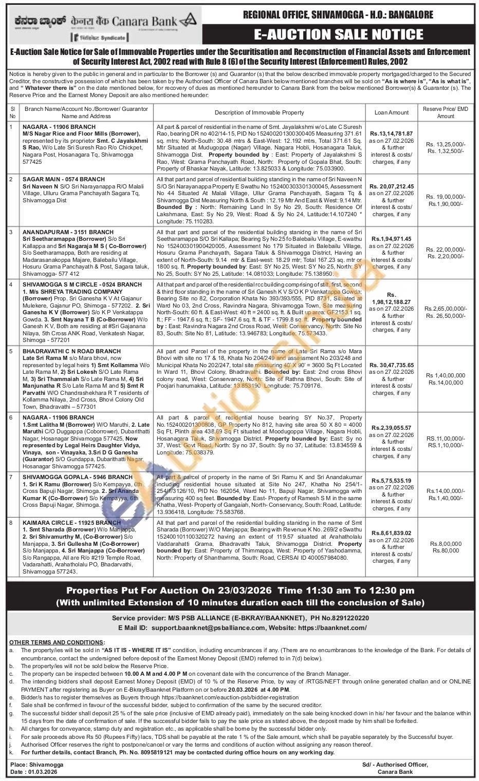 3) All that part and parcel of the residential building staniding in the name of Sri Seetharamappa S/O Sri Kallapa, Bearing Sy No 25 fo Balebailu Village, E-swathu No 152400301900420005, Assessment No 179 Situated in Balebailu Village, Hosuru Grama Panchayath, Sagara Taluk & Shivamogga District, Having an extent of North-South: 9.14 mtr & East-west: 18.29 mtr, Total 167.23 sq. mtr or 1800 sq. ft. Property bounded by: East: SY No 25, West: SY No 25, North: SY No 25, South: SY No 25, Latitude: 14.081033; Longitude: 75.138950.