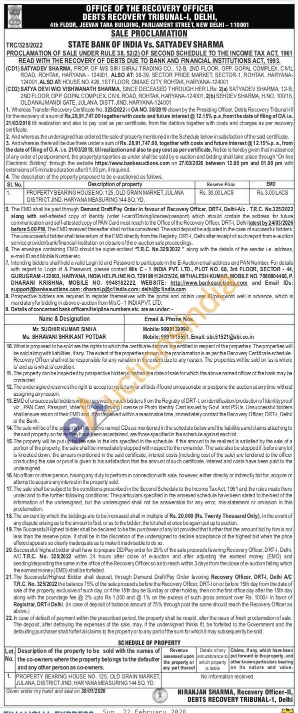PROPERTY BEARING HOUSE NO. 125, OLD GRAIN MARKET, JULANA DISTRICT JIND, HARYANA MEASURING 144 SQ. YD.