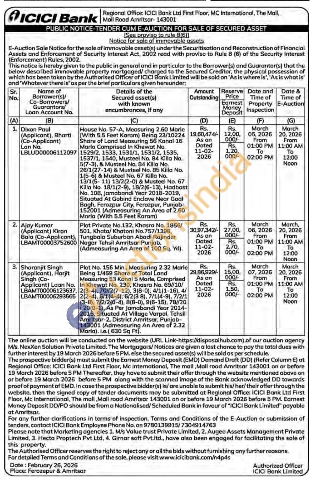 House No. 57-A, Measuring 2.60 Marle (With 5.5 Feet Karam) Being 23/10224 Share of Land Measuring 56 Kanal 16 Marla Comprised In Khewat No. 1529/2, 1533, 1531/1, 1531/2, 1535, 1537/1, 1540, Musteel No. 84 Killa No.. 5(7-3), & Musteel No. 84 Killa No. 26/1(27-14) & Musteel No. 85 Killa No. 1(5-6) & Musteel No. 67 Killa No. 13/1(5-11) 13/2(2-0) & Musteel No. 67 Killa No. 18/1(2-9), 18/2(6-13), Hadbast No. 108, Jamabandi Year 2018-2019. Situated At Gobind Enclave Near Goal Bagh, Ferozpur City, Ferozpur, Punjab-152001 (Admeasuring An Area of 2.60 Marla (With 5.5 Feet Karam