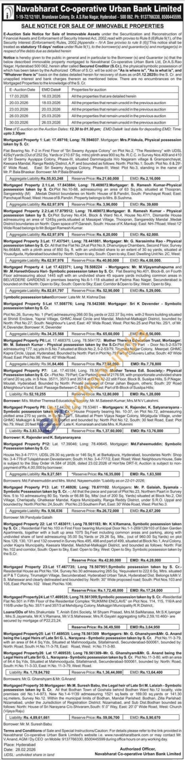 Mortgaged Property P13. Lat: 17.46926; Long: 78.611102. Mortgagers: Mr. P. Galaiah, Syamala Symbolic Possession taken by S. Cr. All that the piece and parcel of Plot No.23, Northern Paart in Survey Nos. 5 to 10 admeasuring 80 Sq. Yards or 66.88 Sq. Mts/ (out of 200 Sq. Yards) situated at Block No.2, Old Village, Cherlapally, Ghatkesar Mandal, Kapra Municipality, Ranga Reddy District, under S.R.O. Uppal and bounded by: North: Plot No: 24, South: Plot No.23 Southern Part, East: 30' Wide Road, West: Plot No.3.