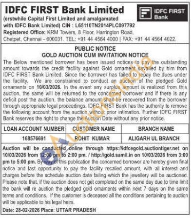 TELEPHONE NO : +91 4445644000 | IDFC FIRST Bank FAX NO: +91 4445644022