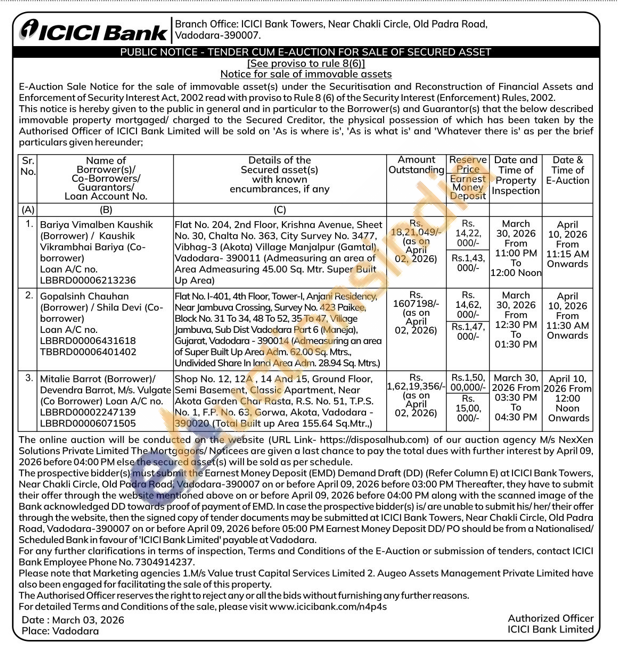 Flat No. 1-401, 4th Floor, Tower-I, Anjani Residency, Near Jambuva Crossing, Survey No. 423 Paikee, Block No. 31 To 34, 48 Το 52, 35 To 47, Village Jambuva, Sub Dist Vadodara Part 6 (Maneja), Gujarat, Vadodara-390014 (Admeasuring an area of Super Built Up Area Adm. 62.00 Sq. Mtrs, Undivided Share In land Area Adm. 28.94 Sq. Mtrs.)