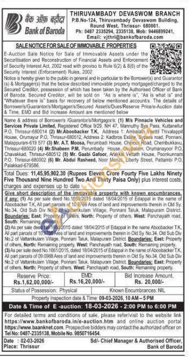 contact the authorized officer on Tel No: 0487-2335138, Mobile No. 9850716454.