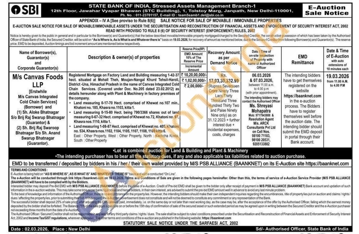 Registered Mortgage on Factory Land and Building measuring 1-42-37 hect. situated at Mohall Theh, Moujan-Nangal Khurd Tehsil-Haroli, District-Una, Himachal Pradesh in the name of Canvas integrated Cold Chain Services. (Covered under Doc. No.205 dated 23.02.2012) as details hereunder along with Plant & Machinery in factory premises of the company. Land measuring 0-17-70 Hect. comprised of Khewat no.107 min.. Khatoni no. 185, Khasra no. 1103, kitta 1. Land measuring 0-15-80 Hect. being 790/3366 shares out of land measuring 0-67-32 Hect. comprised of Khewat no.72, Khatoni no. 97, Khasra nos. 1110, kitta 1. Land measuring 1-08-87 Hect. comprised of Khewat no. 405, Khatoni no. 534, Khasra nos. 1102, 1104, 1105, 1107, 1108, 1109 kitta 6. East: Other Property, West: Other Property, North Kachcha Rasta, South: Other Property