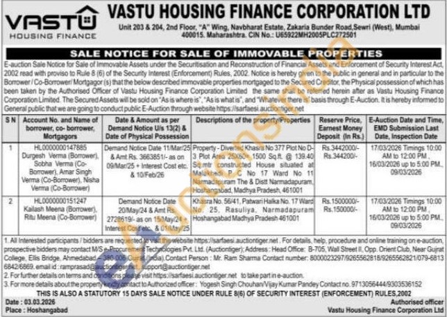 Authorized officer: Yogesh Singh Chouhan Vijay Kumar Pandey Contact no : 9713056444 / 9303536152