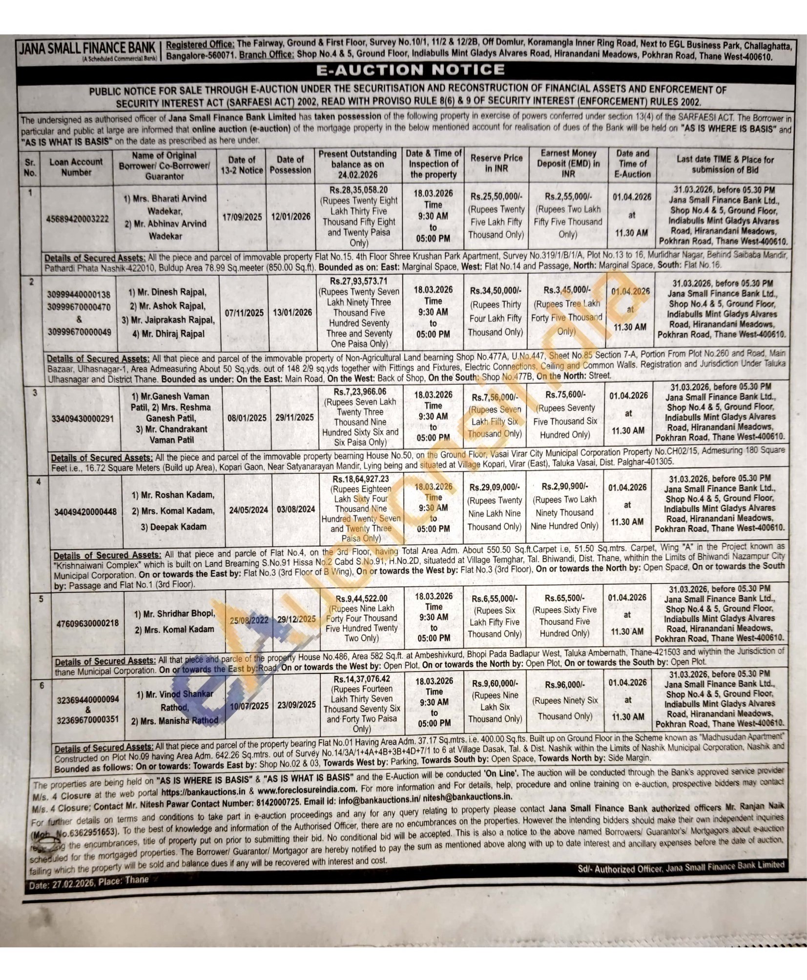 Contact Authorized officers Mr. Ranjan Naik (Mot No.6362951653)