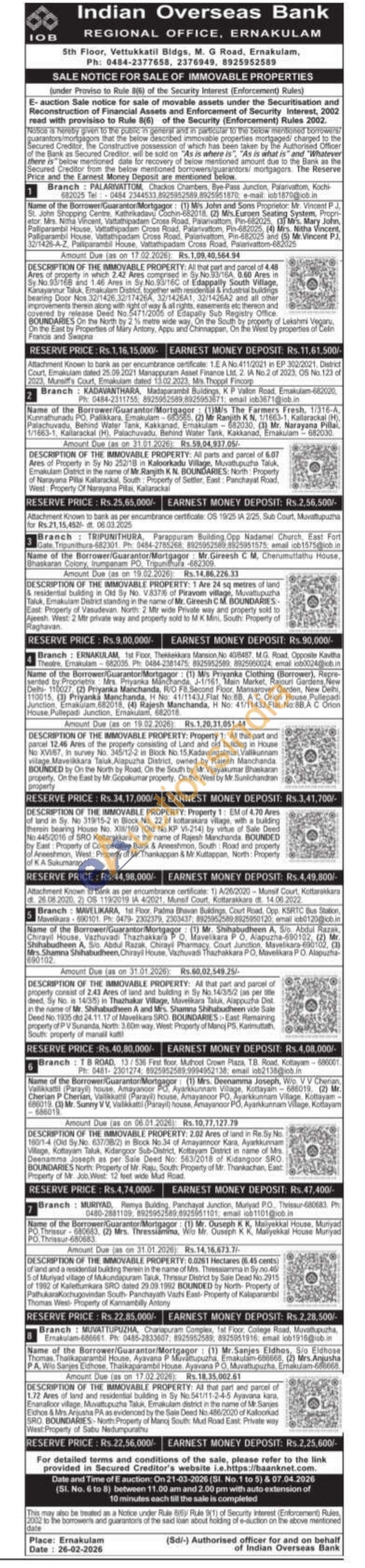 Contact Branch: PALARIVATTOM Tel:0484 2344533,8925952569,8925951870