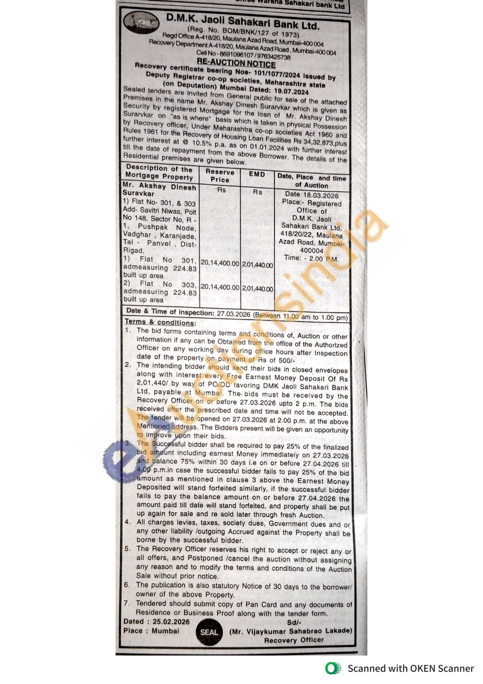1) Flat No- 301, & 303 Add- Savitri Niwas, Polt No 148, Sector No, R -1, Pushpak Node, Vadghar, Karanjade, Tal- Panvel, Dist-Rigad,