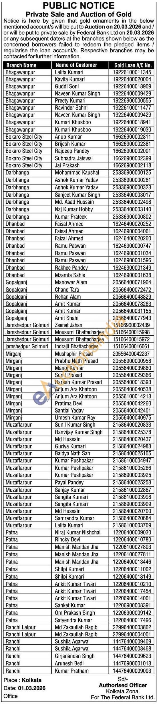 Federal Bank Gold Auctions Auction in Muzaffarpur