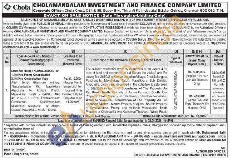 The subject residential property comprises of an extent 4.05 ares of land and everything in old Survey No 248/42 and Re survey No. 215/7/2 in Kannamangalam Village. Chettikulangara Panchayath, Mavelikkara Taluk, Mavelikkara Sub District, Alappuzha District and described in the schedule to sale deed no 389/2015 in favour of Boundaries of The Property As Per Deed: North: Property of Ashari Parambil, South: Our Property East: Property of Kaleekkal & Kaleekkal Vadakkari West: Nadavarambu, Boundaries of The Property As Per Location Sketch:-North: Property of Ajimol, South: Property of Omanakuttan, Prema And Valliyath Vadakkathil, East: Property of Krishnapila And Kaleekkal Thekkanil, West: Road