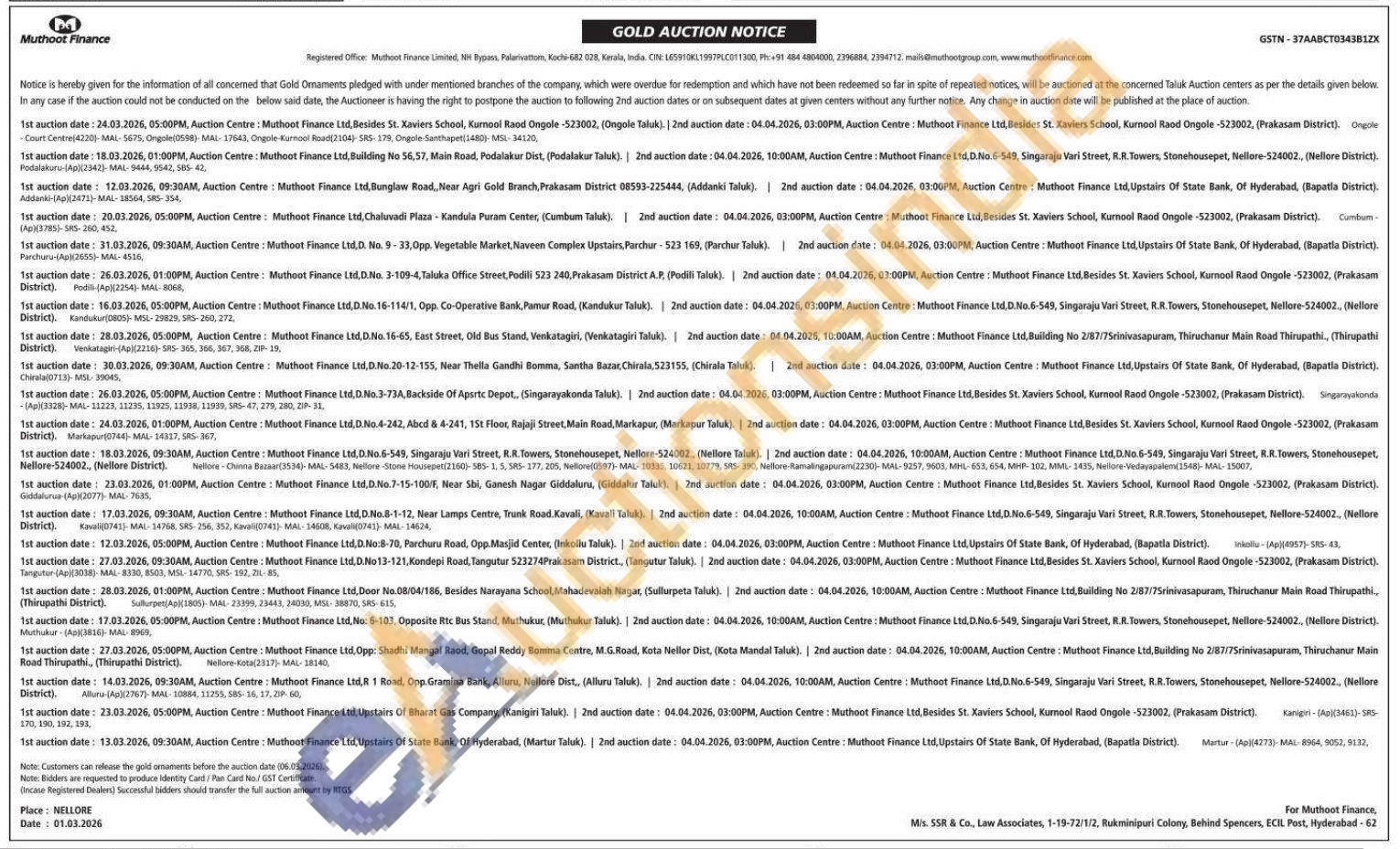 Muthoot Finance Ltd Gold Auctions Auction in Ongole
