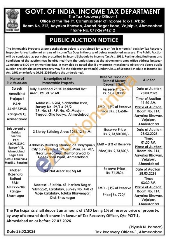 2) 3 Storey Building Area: 1068. 12 Sq.Mt. Address:- Building situated at Dariyapur-2. City Survey No. 1079 and Muni. Se. 707, Near Lunsanwad, Kumbharwad to Gheekanta Road, Ahmedabad