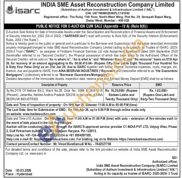 Sy.No.2119 Of Nellore Bit-2, Ward No.28, Door No. 3066 & 28-8-1018 (Present), Janardha, Nellore Andhra Pradesh 524316 in the name of AINA BEERUVA INDUSTRIES