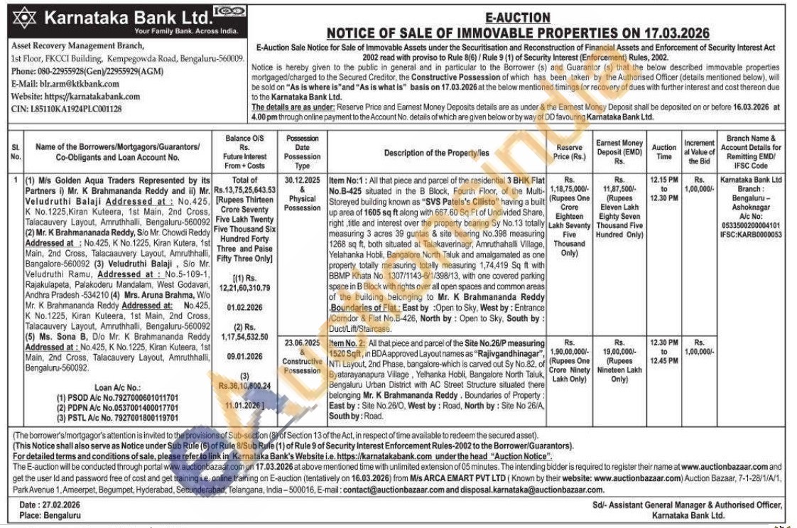 Item No. 2: All that piece and parcel of the Site No.26/P measuring 1520 Sqft, in BDA approved Layout names as "Rajivgandhinagar", NTI Layout, 2nd Phase, bangalore-which is carved out Sy No.82, of Byatarayanapura Vilage, Yelhanka Hobli, Bangalore North Taluk, Bengaluru Urban District with AC Street Structure situated there belonging Mr. K Brahmananda Reddy. Boundaries of Property East by: Site No.26/0, West by: Road, North by: Site No 26/A South by: Road