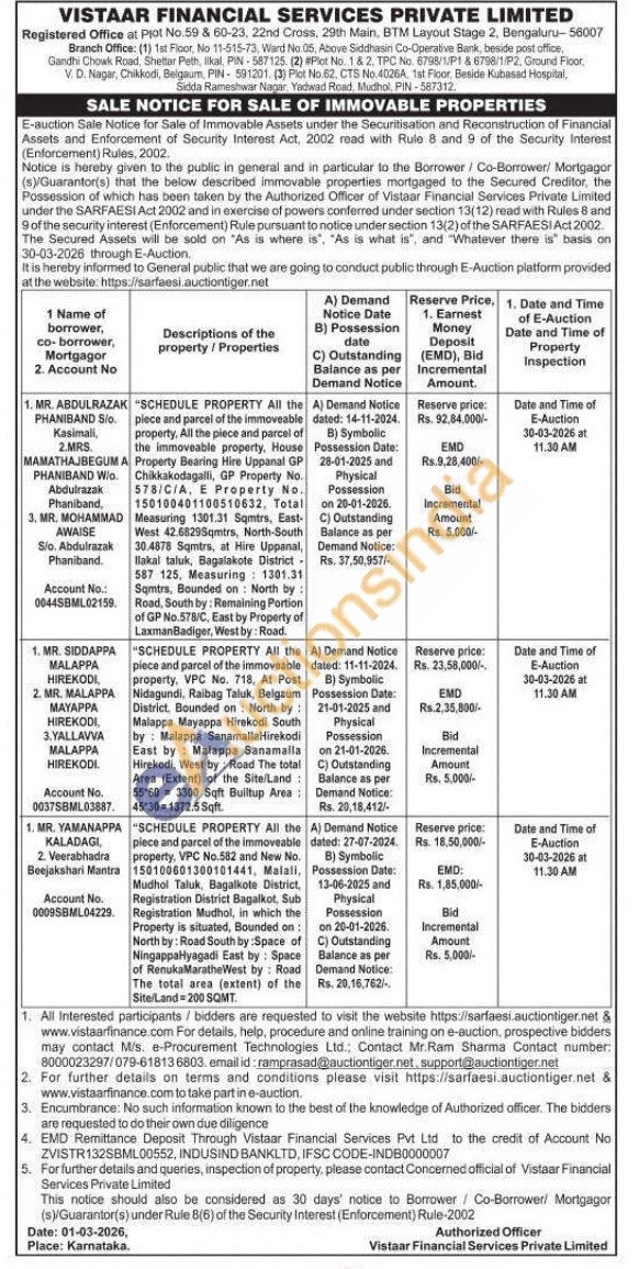2 ) SCHEDULE PROPERTY All the piece and parcel of the immoveable property, VPC No. 718. At Post Nidagundi, Raibag Taluk, Belgaum District, Bounded on North by: Malappa Mayappa Hirekodi South by Malappa SanamallaHirekodi East by Malappa Sanamalla Hirekodi, West by Road The total Area (Extent) of the Site/Land 55-60 3300 Sqft Builtup Area 45*30-1372.5 Sqft