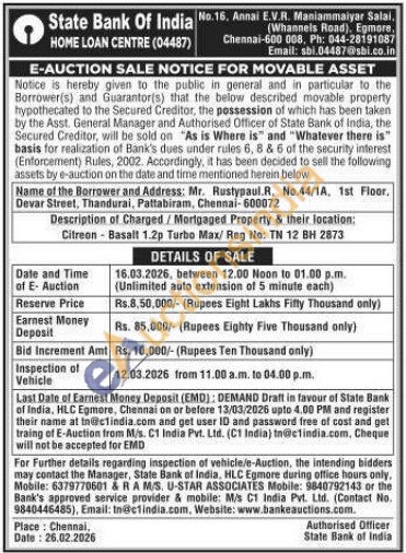 Description of Charged/Mortgaged Property & their location: Citreon Basalt 1.2p Turbo Max / Reg No: TN 12 BH 2873