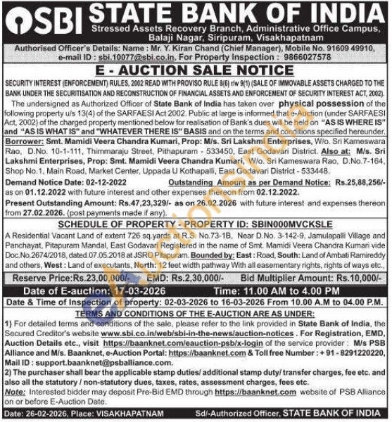 Authorised Officer's Details: Name: Mr. Y. Kiran Chand (Chief Manager) Mobile No : 9160949910,