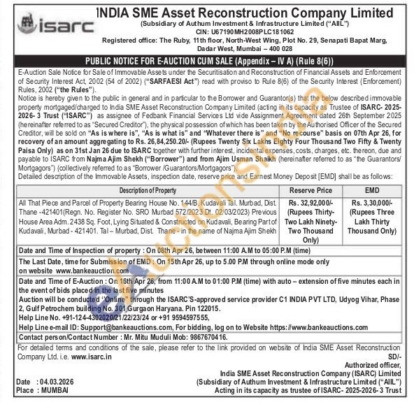 All That Piece and Parcel of Property Bearing House No. 144/B, Kudavali Tal, Murbad, Dist. Thane -421401(Regn. No. Register No. SRO Murbad 572/2023 Dt. 02/03/2023) Previous House Area Adm. 2438 Sq. Foot, Lying Situated & Constructed on Kudavali, Bearing Part of Kudavali, Murbad-421401. Tal-Murbad, Dist. Thane-in the name of Najma Ajim Shekh