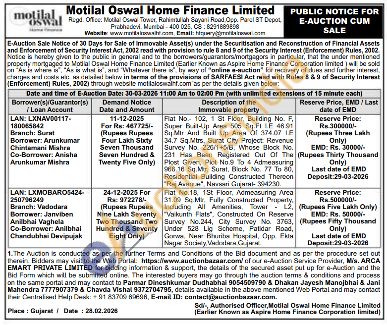 Flat No.18, 1St Floor, Admeasuring Area 31.09 Sq.Mtr, Fully Constructed Property, Including All Amenities, Tower -L2 "Vaikunth Flats", Constructed On Reserve Survey No.244, City Survey No. 3763, Under 528 Lig Scheme, Patidar Road, Gorwa, Near Bhuriba Hospital, Opp. Ekta Nagar Society, Vadodara, Gujarat