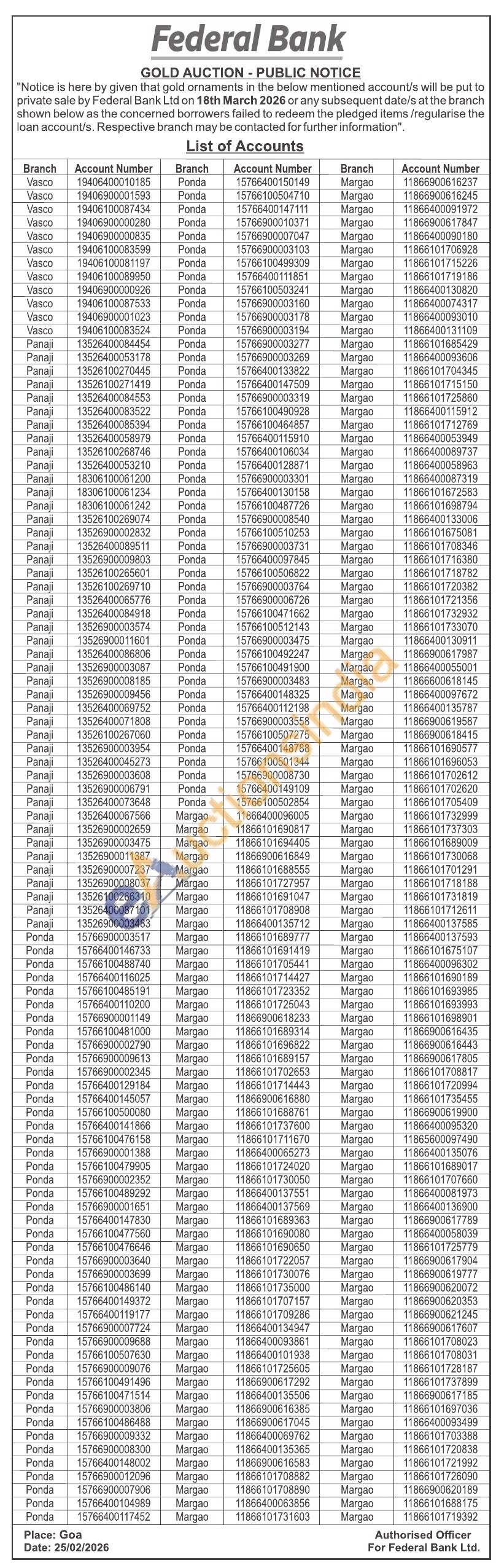 Federal Bank Gold Auctions Auction in Goa