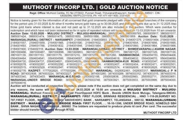 Muthoot Fincorp Ltd Gold Auctions Auction in Mulugu