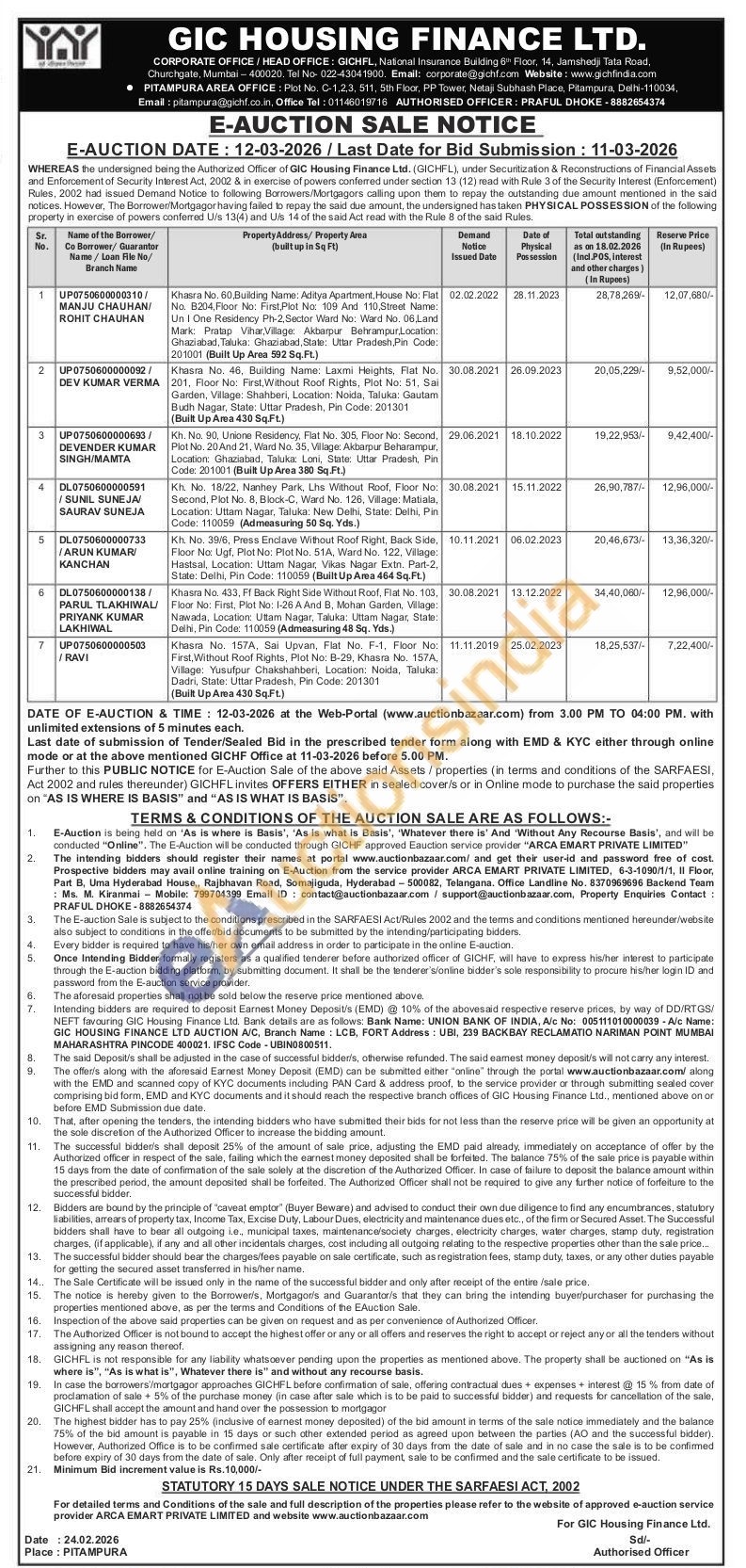Khasra No. 157A, Sai Upvan, Flat No. F-1, Floor No: First, Without Roof Rights, Plot No: B-29, Khasra No. 157A, Village: Yusufpur Chakshahberi, Location: Noida, Taluka: Dadri, State: Uttar Pradesh, Pin Code: 201301 (Built Up Area 430 Sq.Ft.)